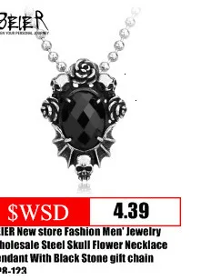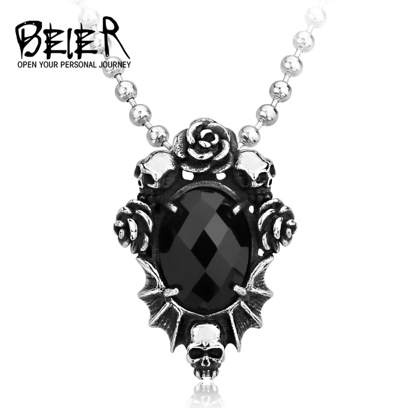 Мужское ожерелье с черепом BEIER, колье с черным камнем, Подарочная цепочка, ювелирные изделия, оптовая продажа