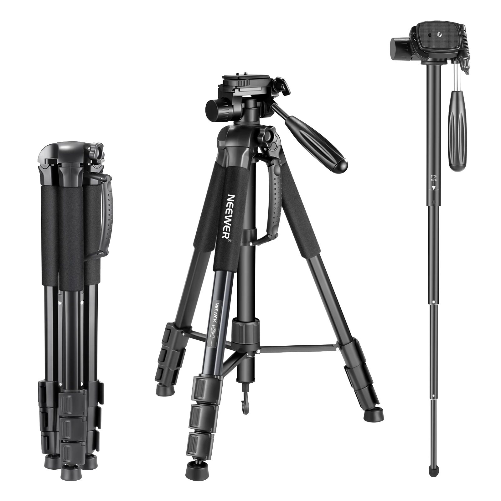 Портативный штатив-монопод для камеры Neewer из алюминиевого сплава диаметром 177 см, вращающиеся пластиковые ножки, 3-сторонняя Поворотная сумка для переноски с панорамной головкой для Sony