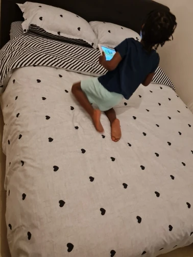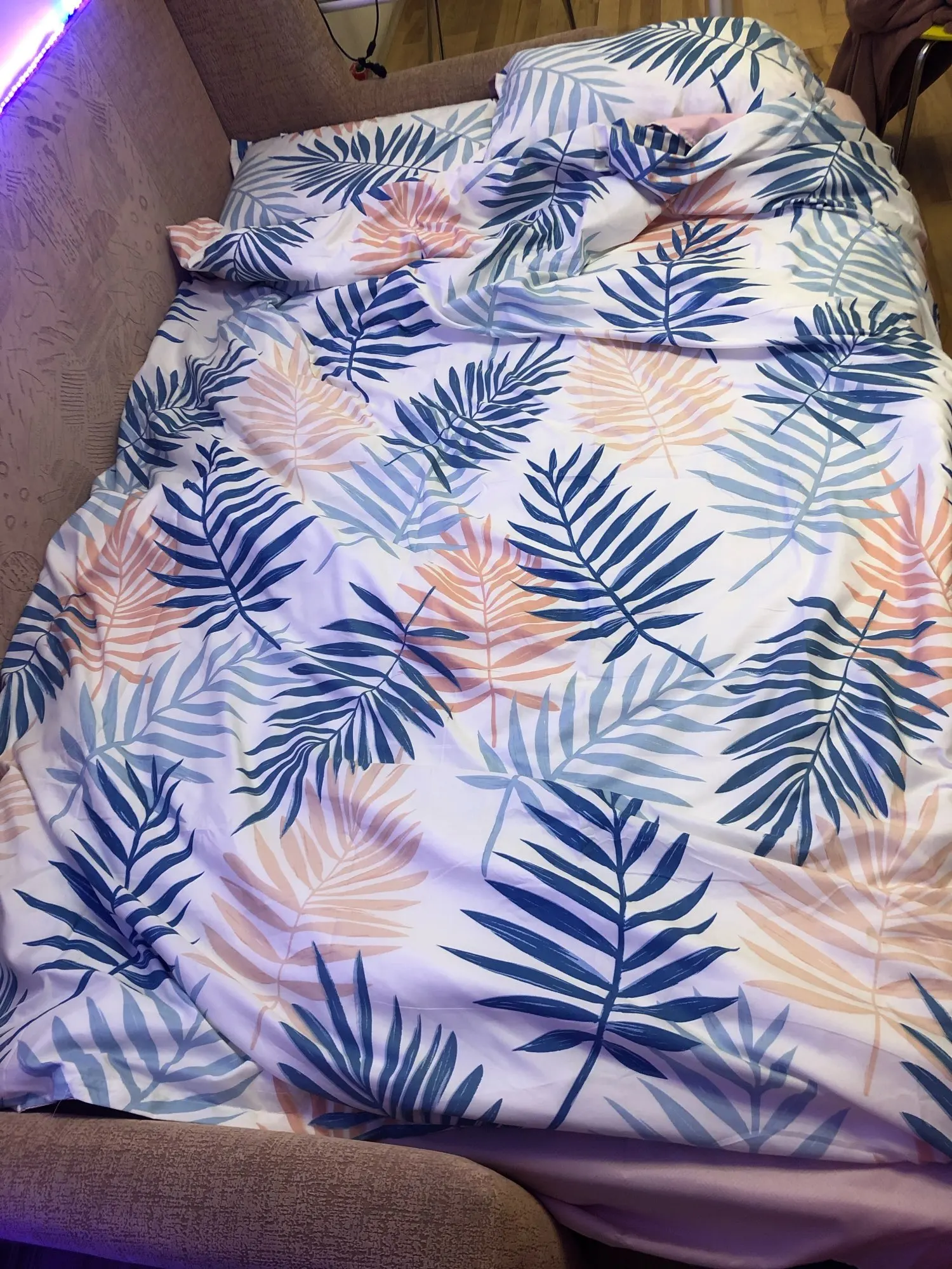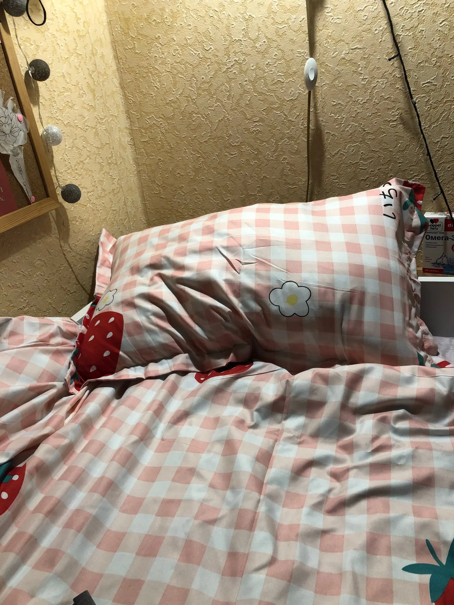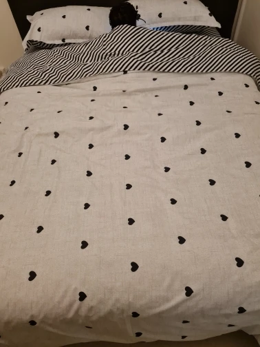Постель приятная, но вот принт... В общем не рекомендую именно этот принт так как от полосок ребит в глазах так, что голова болит :) Но можно перевернуть пододеяльник как на фото и тогда всё ок :)