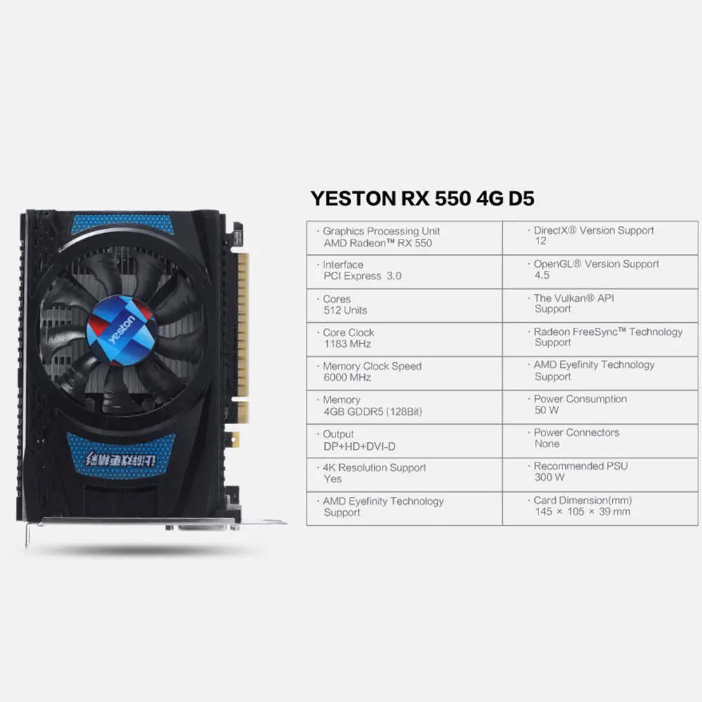 Yeston Radeon RX 550 GPU 4 ГБ GDDR5 128bit игровой настольный компьютер ПК видео видеографики карты Поддержка DVI-DHDMI-совместимыйDP