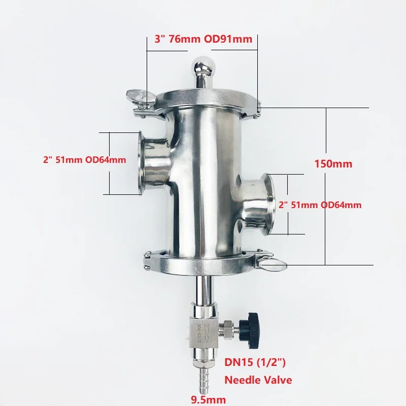 Набор корзин для дистилляции 3 дюйма (76 мм) OD91, 2 боковых порта 2 дюйма (51 мм) OD64 с фильтром V-340ml, длина 150 мм SS304