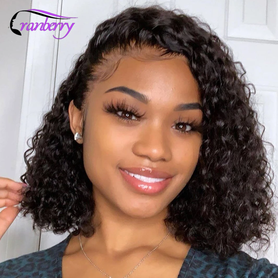 Парик из малазийских вьющихся волос с клюквой, 13х4 фронтальные натуральные волосы, короткие кудрявые, дешевый, для чернокожих женщин