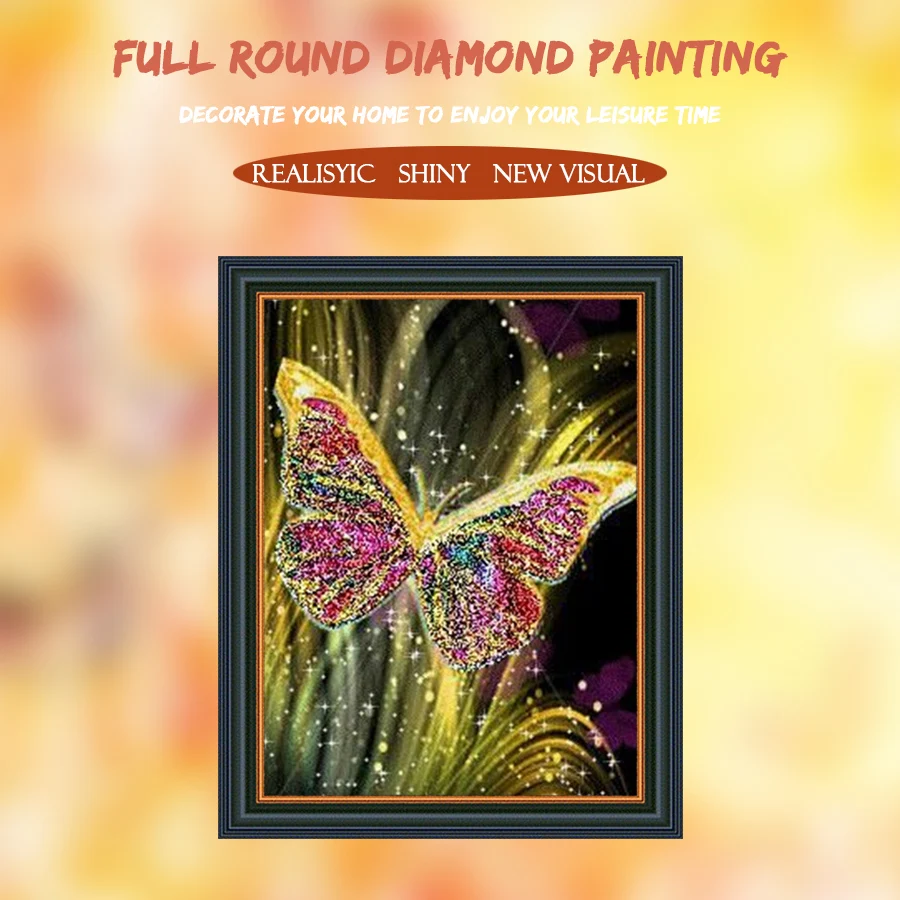 5D алмазная живопись сделай сам, красочная Хрустальная бабочка, полная круглая Алмазная вышивка, мозаика, Набор для вышивки крестиком, домашний декор, рукоделие