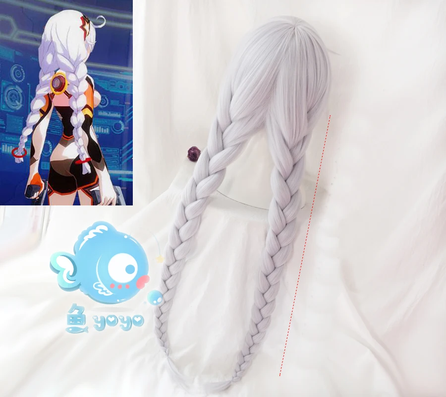 Honkai Impact 3 косплей парик киана каслана косы хвостики серебряные Длинные Волосы на лице