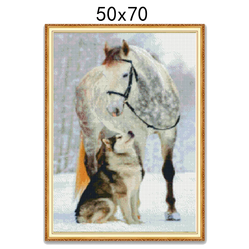 Алмазная вышивка Снежная лошадь, картина из круглых страз, вышивка крестиком, полная выкладка, мозаика Хаски 5D сделай сам, Зимняя Вышивка с собакой