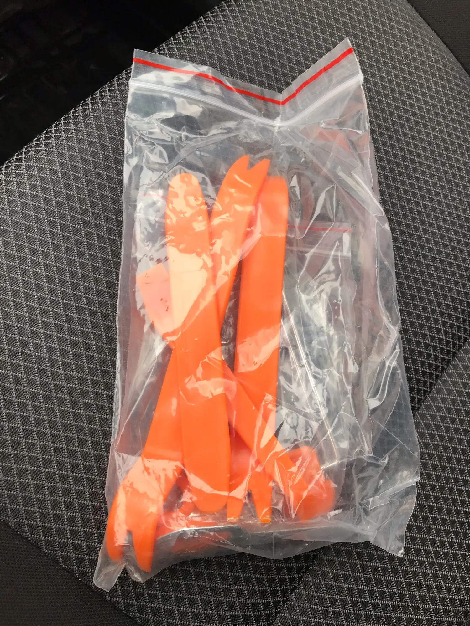Получил в обычном полиэтиленовом пакетике. никакой коробки, что на картинке у продавца - нет! А это уже означает потенциальный обман покупателя! Края у пластмассовых изделий острые, твердые, необработанные! Ими легко поцарапать салон машины!