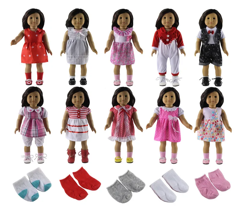 Новинка, 10 комплектов кукольной одежды + 5 пар носков для американской куклы 18 дюймов