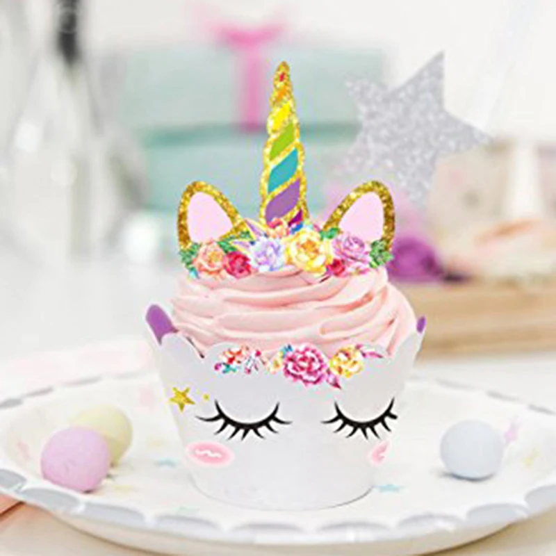 Украшения для торта в виде единорога, подставка для обертка для капкейков вечерние украшение для дня рождения, вечевечерние, детские праздничные принадлежности
