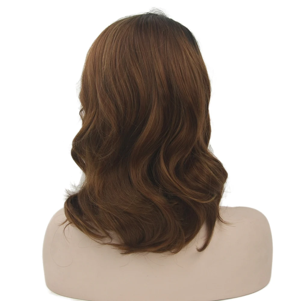 Искусственные волосы Soowee, парик с эффектом омбре от черного до коричневого цвета, волнистые искусственные волосы среднего размера, женские парики для косплея