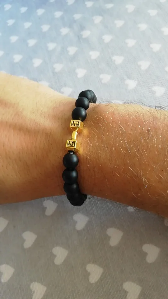 Браслеты для женщин и мужчин, из натурального черного камень из вулканической лавы браслет с гантелей черного матового бисера, ювелирные изделия для фитнеса со штангой