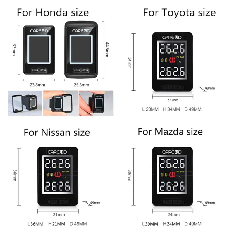 Монитор CAREUD TPMS U912 для системы контроля давления в шинах NissanMazdaToyotaHonda, используемый для монитора потерянного или сломанного без датчиков