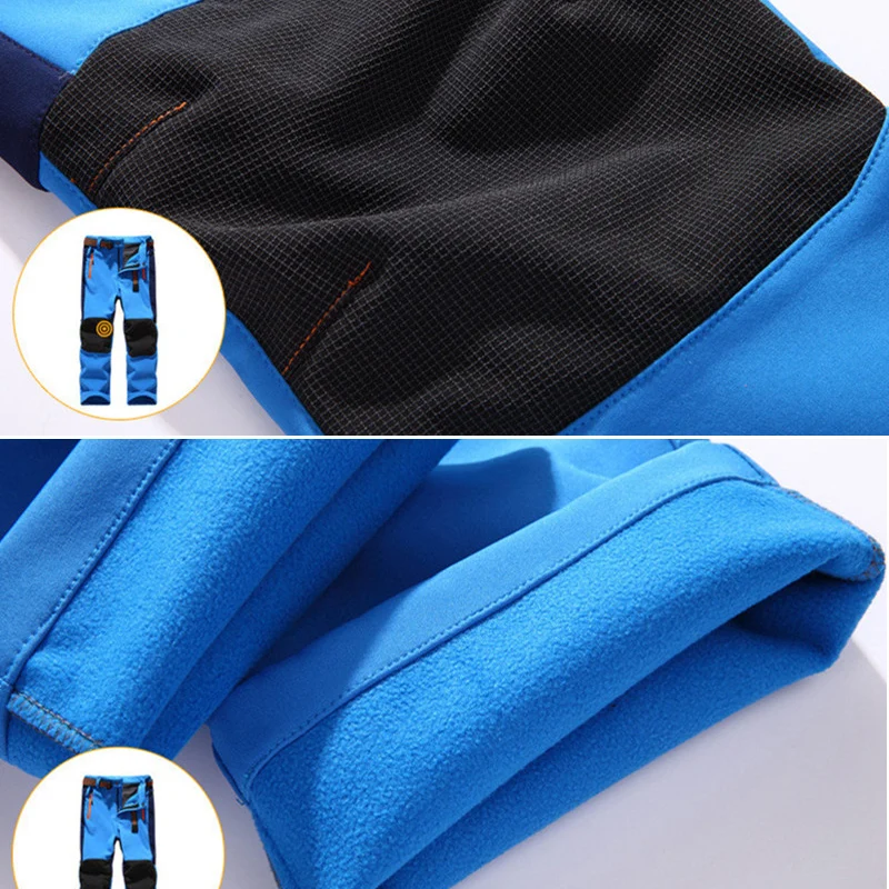 Походные штаны для мальчиков и девочек, детские зимние теплые леггинсы, Детские Водонепроницаемые флисовые брюки Softshell для лыжного спорта и трекинга