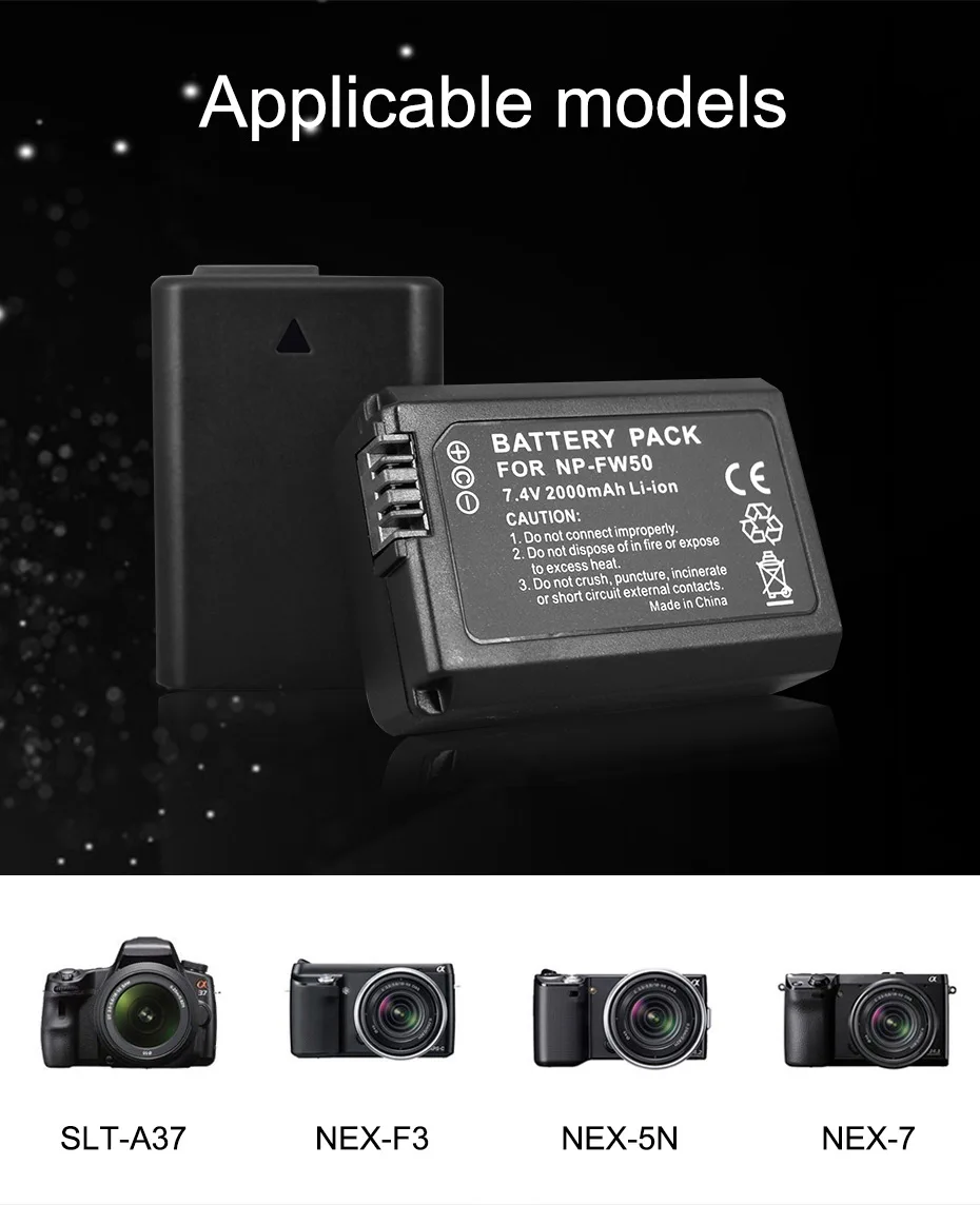 Аккумулятор и зарядное устройство NP-FW50 NP FW50 FW50, с двойным USB дисплеем, 2000 мАч, для Sony Alpha a6500, a6300, a6000, a5000, a3000, NEX-3, a7R