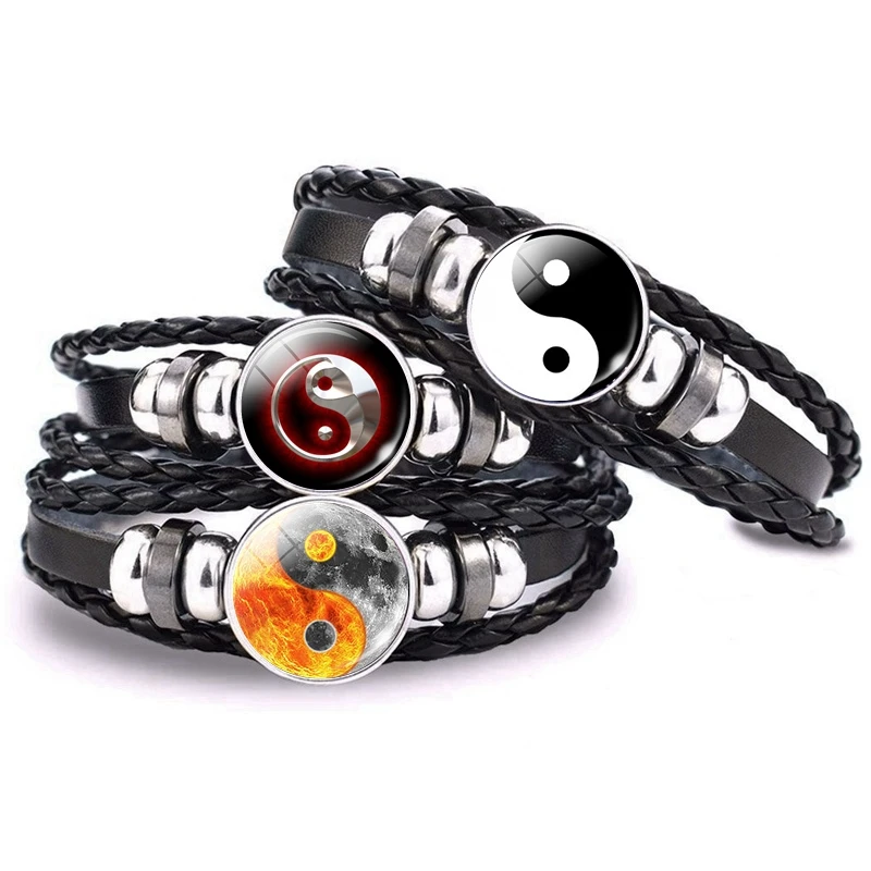Черно-белый браслет с кнопками-застежками Tai Chi, мужской кожаный ...