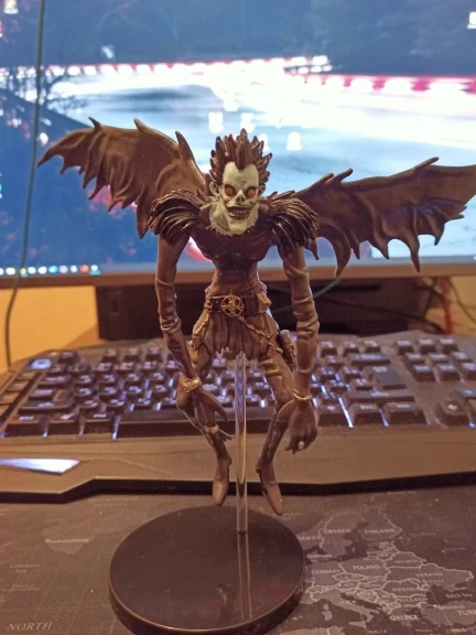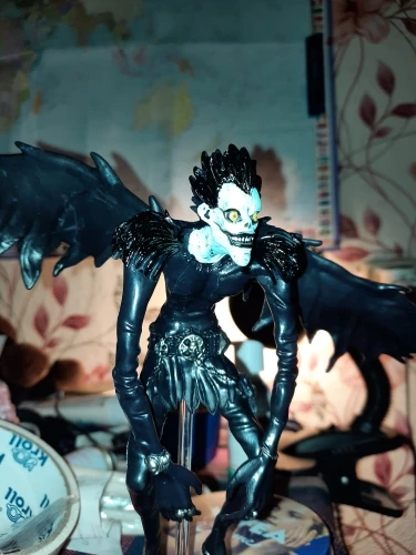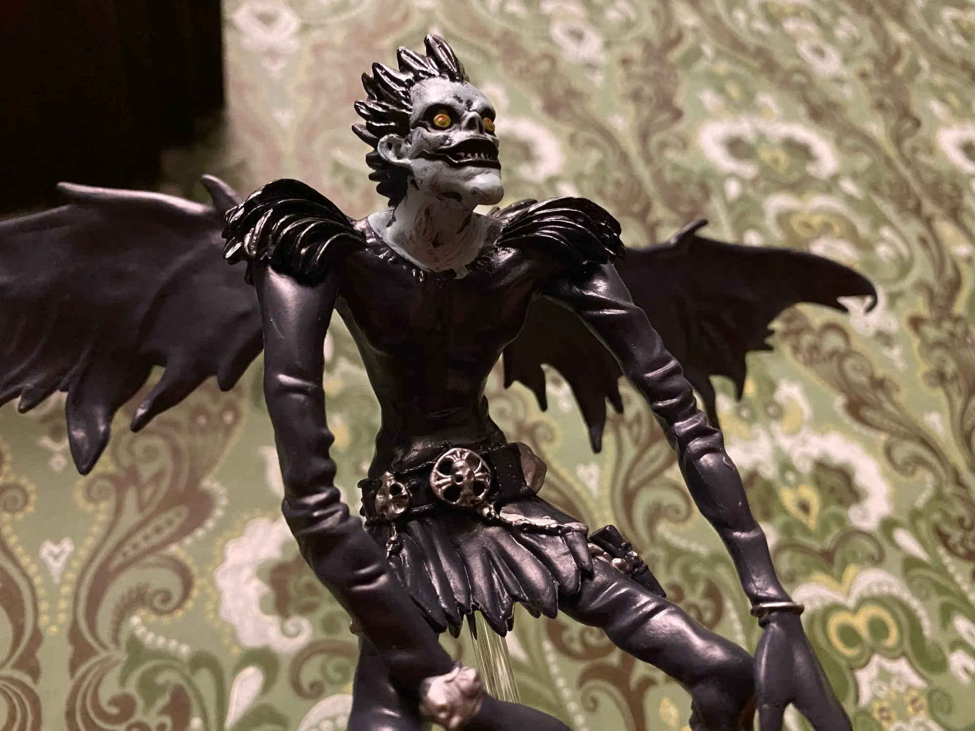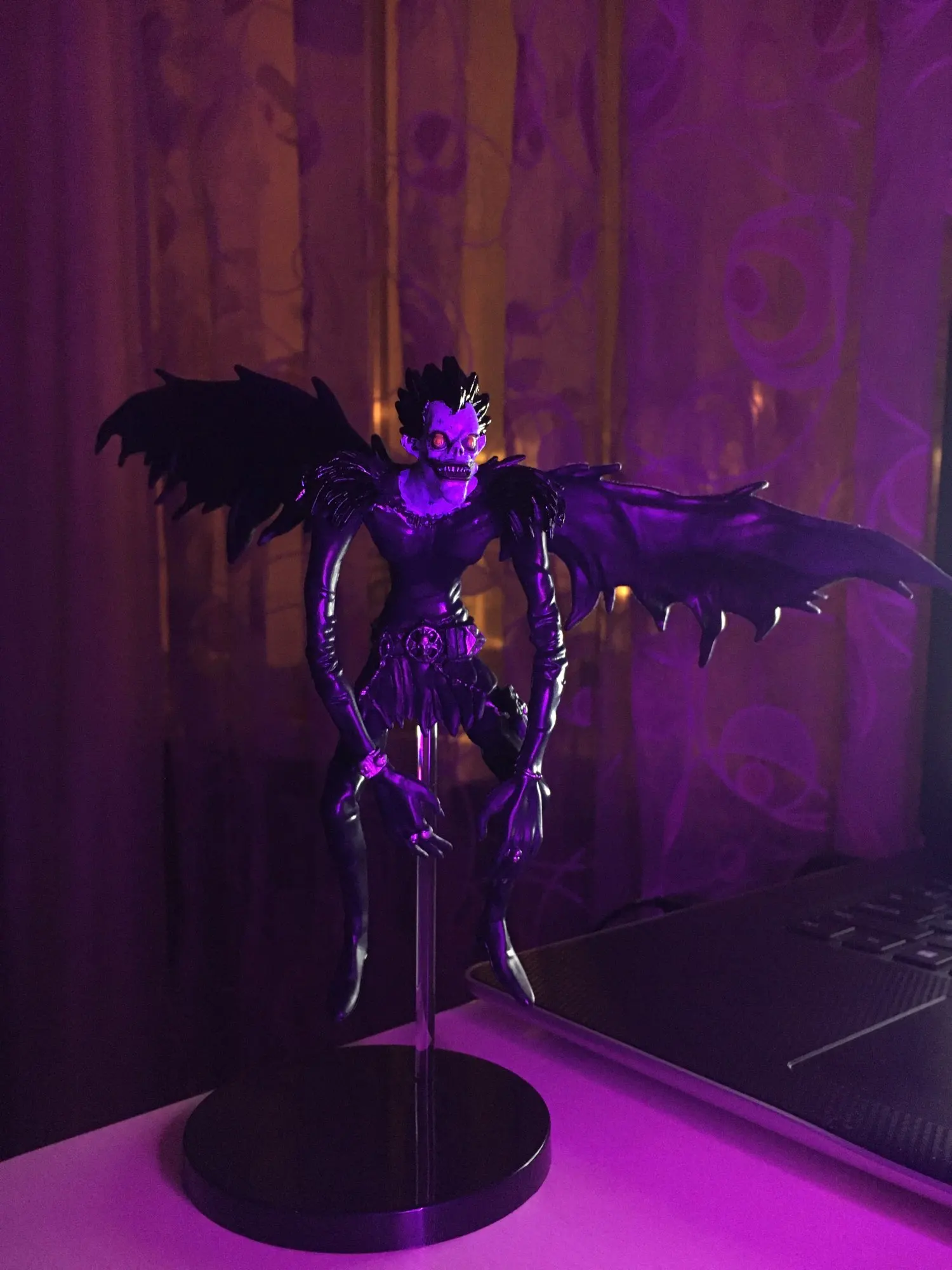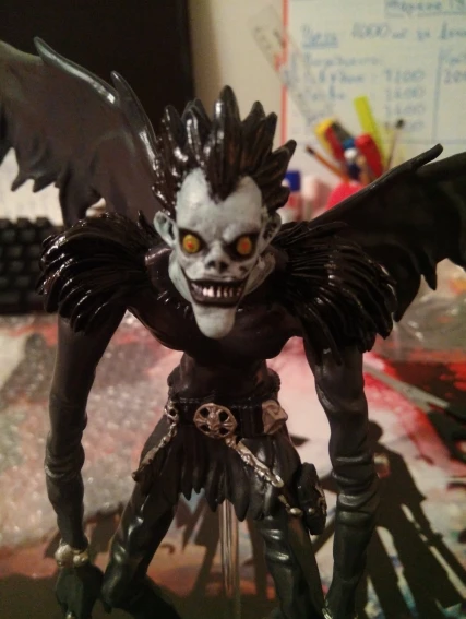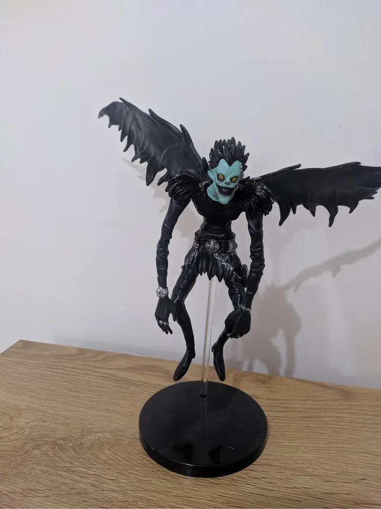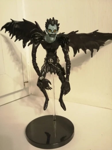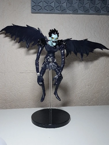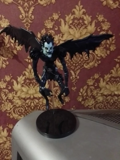 За эти деньги sorta-я на самом деле впечатлен. Ryuk изготовлен из мягкого пластика. Он немного пахнет, но это действительно не проблема. Крылья выпадают, если не вставлены правильно, но вы можете просто приклеить их к спине, это работает. Не сидит слишком плотно в подставке, но это не значит, что я буду слишком сильно его перемещать. В целом, за эту цену просто купите. Кто не хочет, чтобы эти Великолепные блестящие плавают перед ними во время работы? Правильно, просто сделайте это.