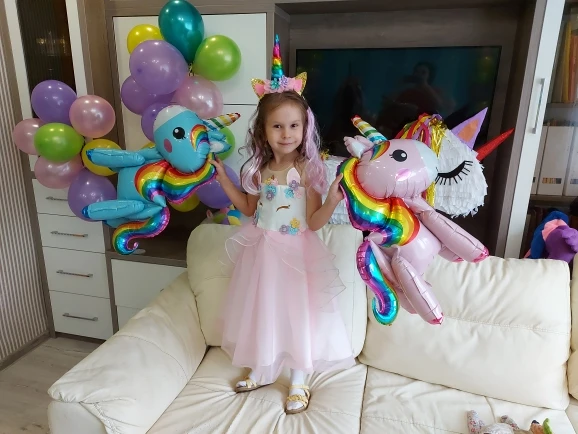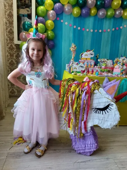 Великолепные хорошо сделанные платья с рогом единорога. Стоит своих денег. Выглядит так, будто они немного велики.