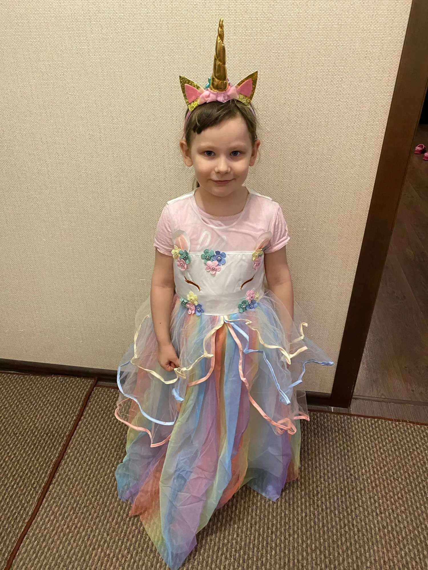 Замечательное платье, на 5 лет взяла размер 5. сидит очень хорошо! в подарок прислали крылья!