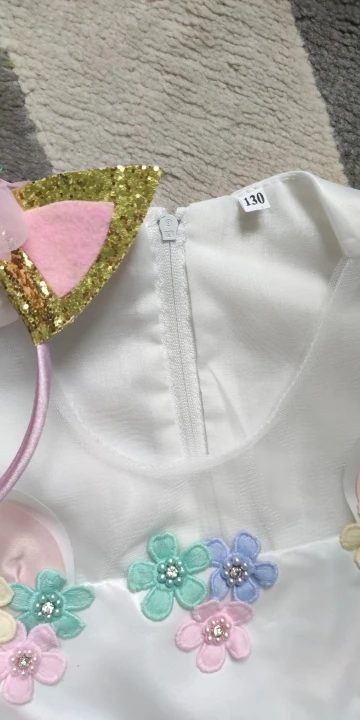 пришло очень классное платье. померили(одеваю я меню на футболку, но не на голое тело, тк чёрт его знает, где валялось), всё, отлично. и после я его постирала, вручную, аккуратно....и все цветы потекли и окрасили всё вокруг вывод, как на картинке но, лучше не стирать. но на ребёнка на голое тело я б даже не надела.