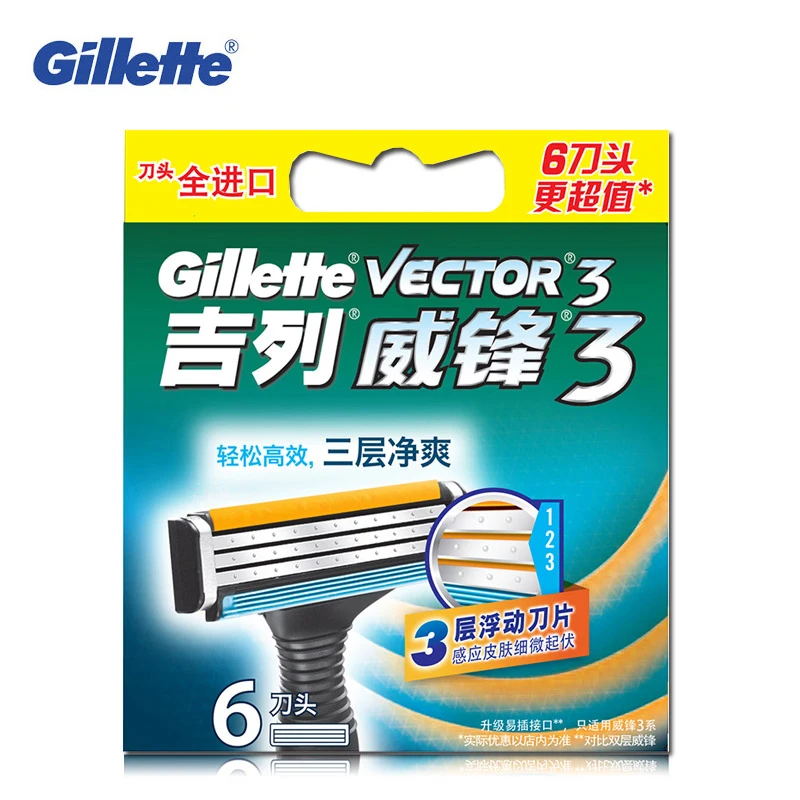 Оригинальная Безопасная бритва Gillette Vector 3, бритвенные лезвия, лезвия для бритья бороды, бритва Blades1, бритвенная ручка, 1 лезвие + 6 лезвий