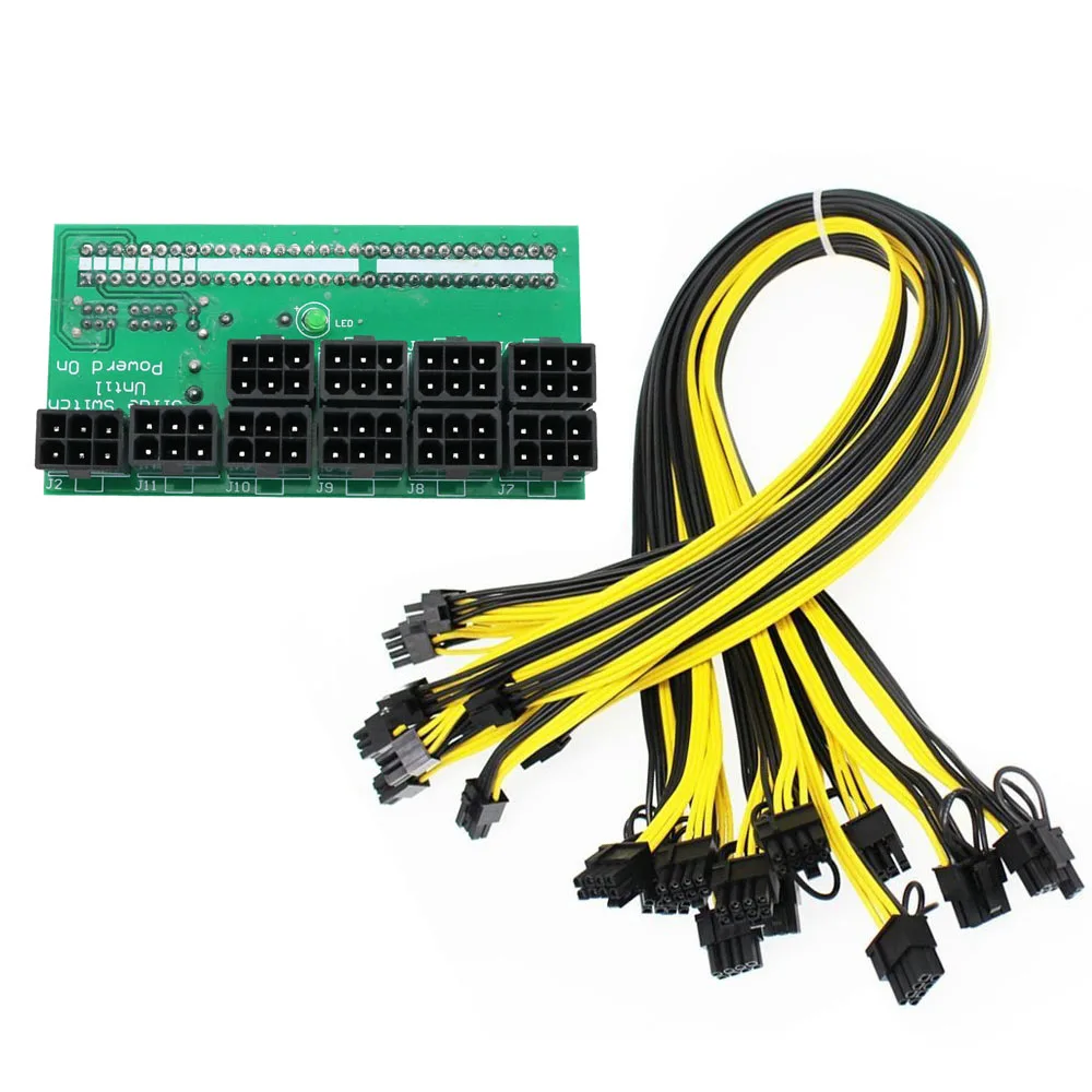 Блок питания для сервера майнинга Ethereum ETH ZEC, 12 В, коммутационная плата GPUPSU, 9 шт., 18AWG, PCI-E, 6 контактов на 6 + 2 контактов, адаптер питания