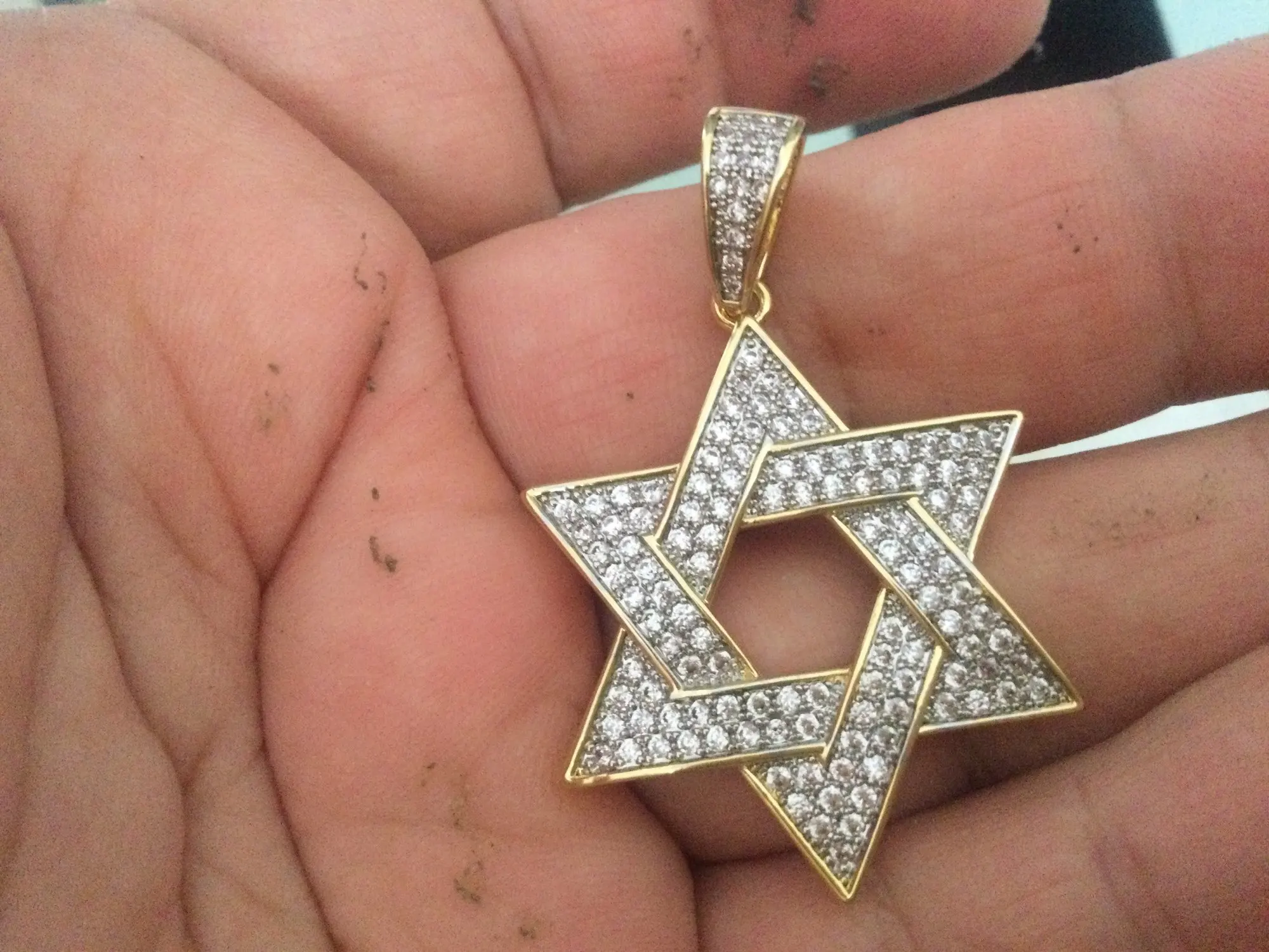 TOPGRILLZ хип-хоп мужские позолоченные ювелирные изделия микро проложить льдом CZ камень звезда Давида, кулон ожерелье с веревкой цепи