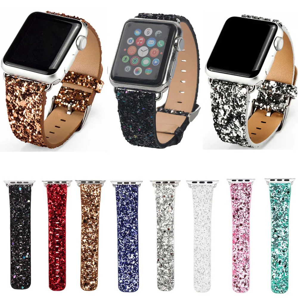 Блестящий ремешок из искусственной кожи для Apple Watch Series 5, 4...