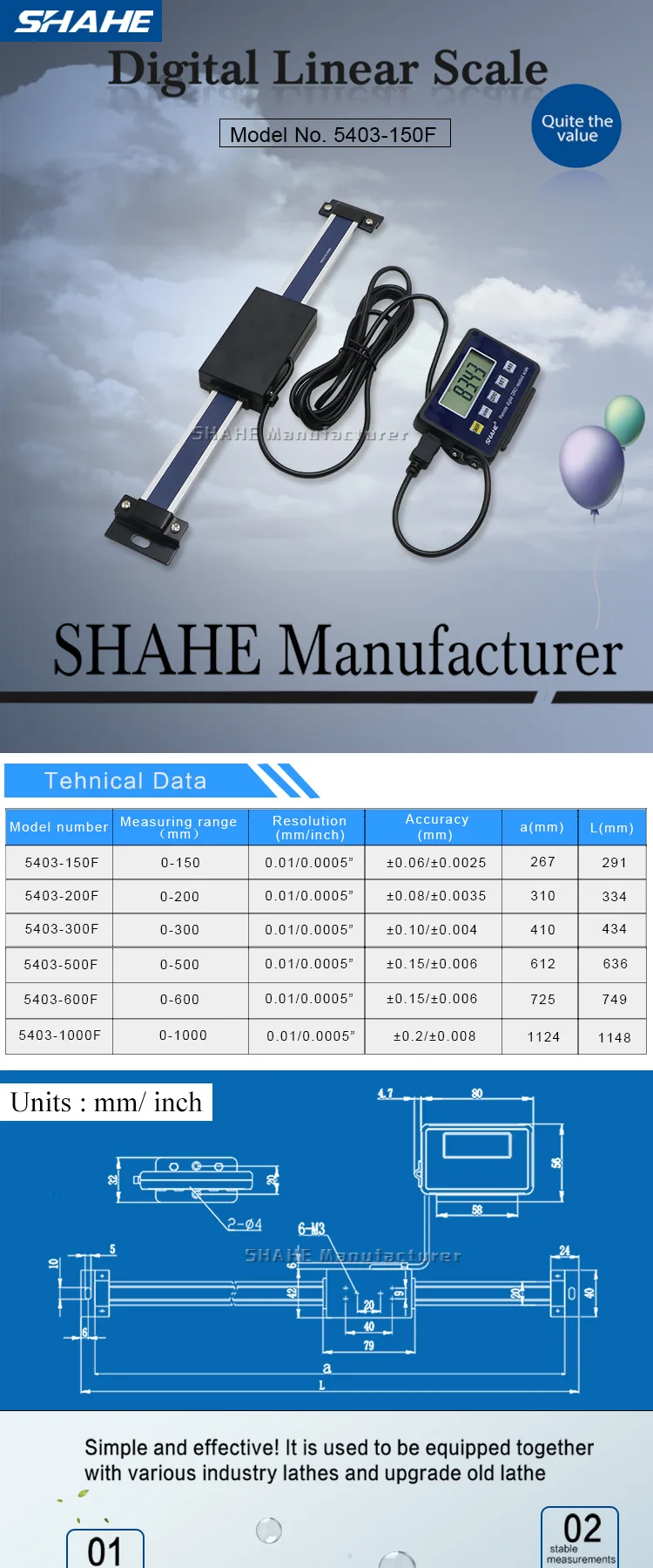 Shahe 0-150 мм0-200 мм0-300 мм 0,01 мм DRO Магнитный дистанционный цифровой индикатор цифровые линейные весы внешний дисплей