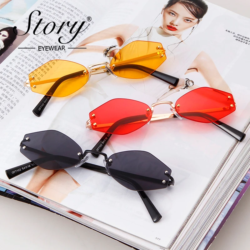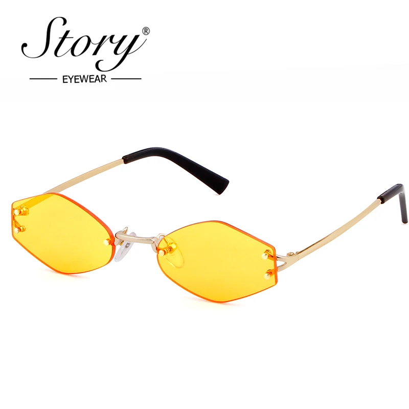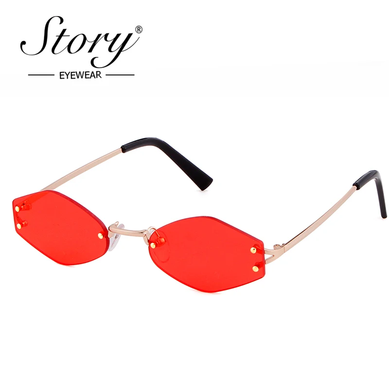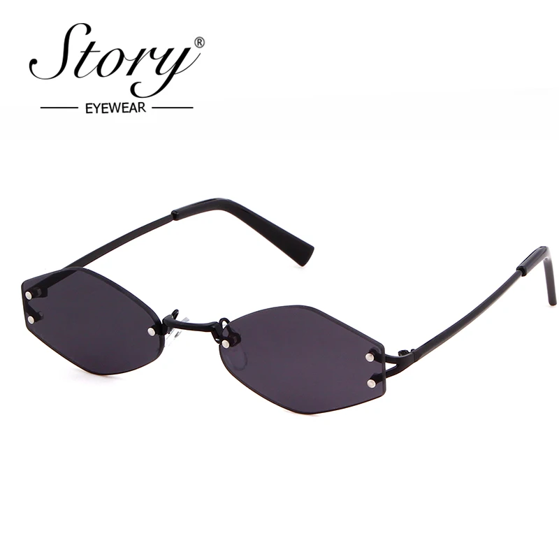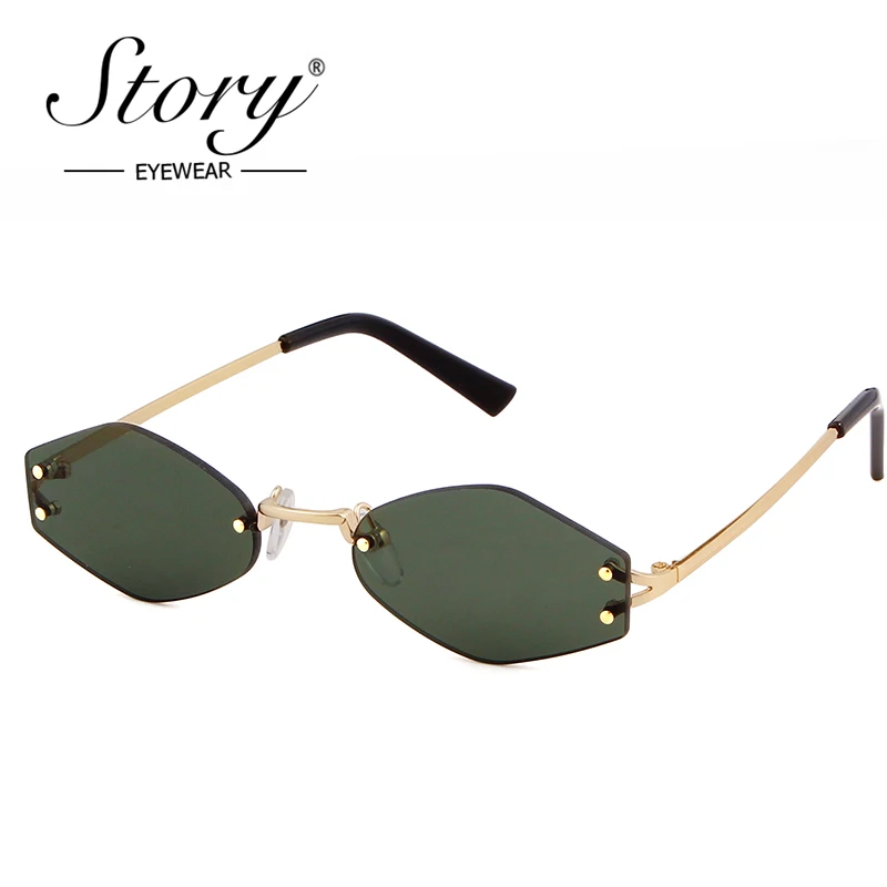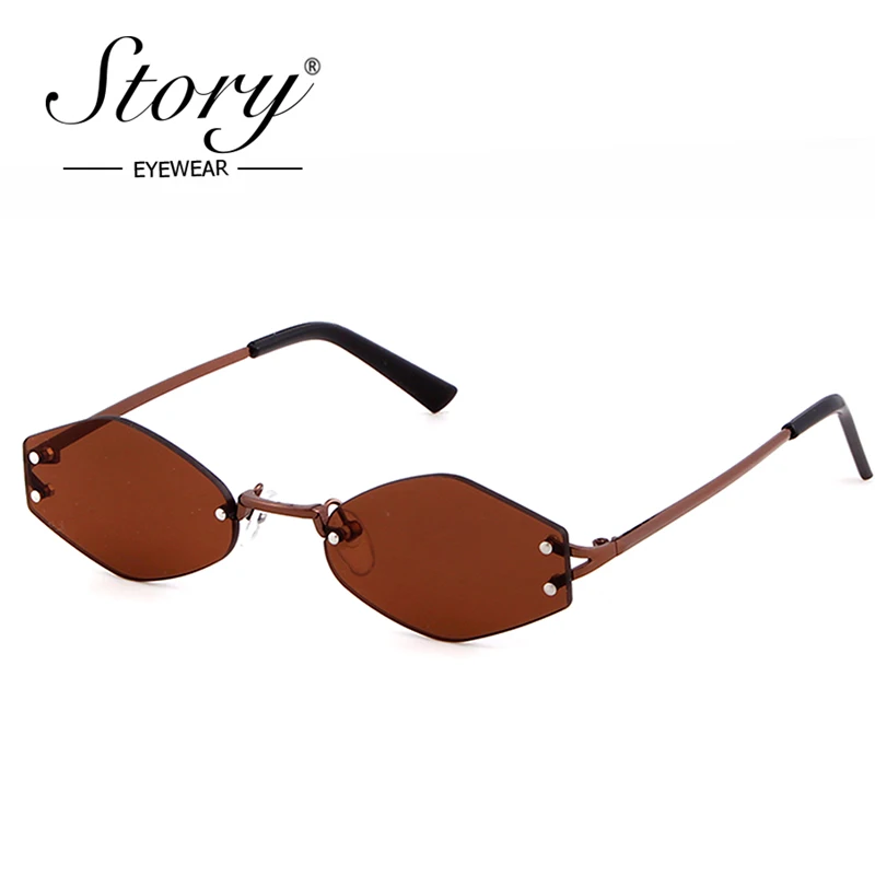 Очки солнцезащитные маленькие без оправы UV400 женские, брендовые винтажные Прозрачные солнечные очки в ретро стиле, с ромбовидными линзами, с защитой от ультрафиолета