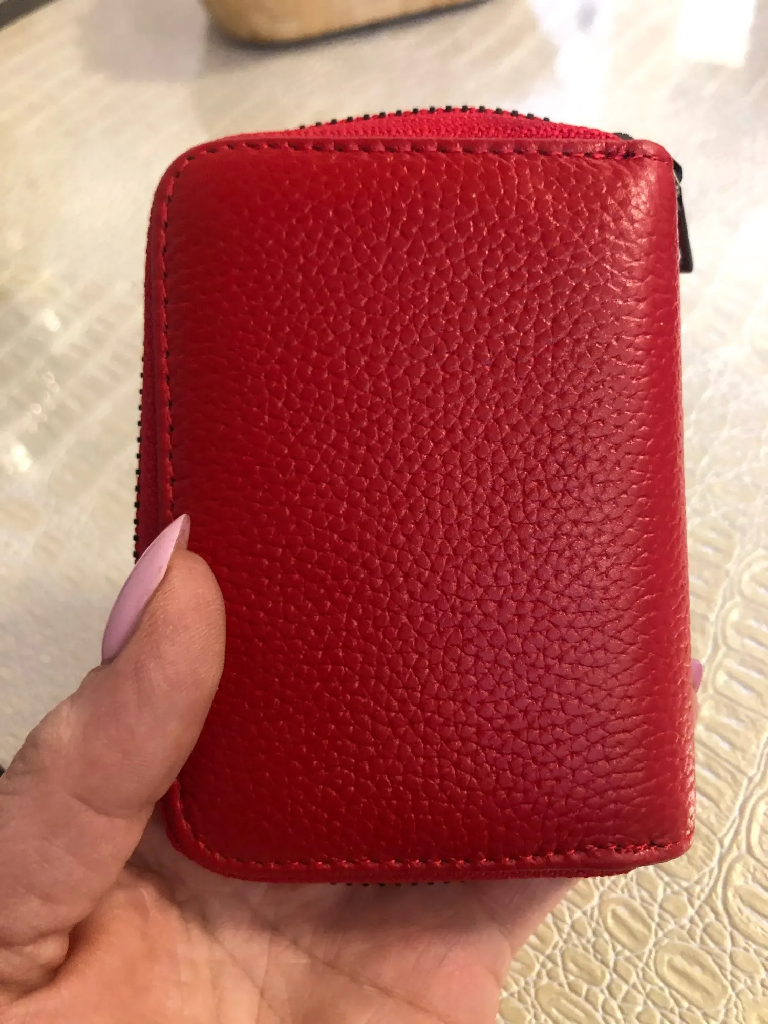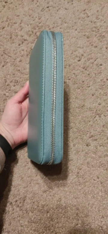 Пришло быстро. Качество хорошее. Все, как в описании. Единственный момент это то что с одной стороны молния слишком близко прилегает к ячейкам для карт....и при раскрывания сумки молния иногда задевает некоторые пластиковые карты.....- углами цепляются. Т.е. сама визитница внутри (карманы под пластиковые карты) не отцентрирована четко.... Но в целом неплохо. Не критично. Продавца рекомендую.