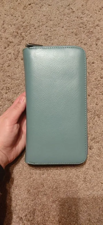 большой, вместительный кошелек, очень много кармашков для карточек и визиток , отделение для телефона, страховки и т. п. Удобный, арасивый, молния широкая прочная. Товар рекомендую.