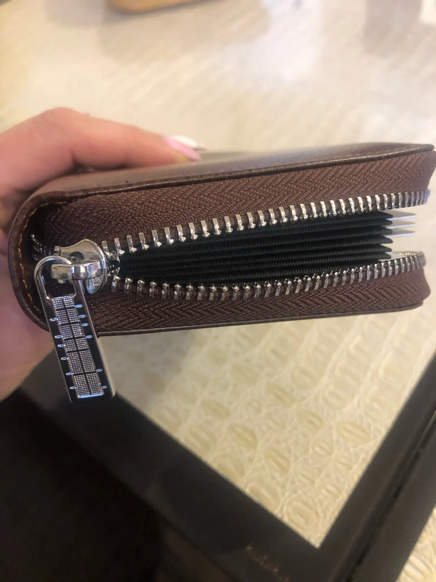 с виду достойный кошелек, молния широкая, удобный для документов, карточек, наконец, я надеюсь, будет порядок с карточками.