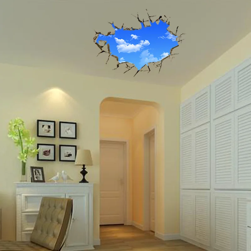 Самоклеящаяся Настенная роспись 3D с изображением голубого неба, белого цвета, Наклейка Настенная облака для детской комнаты, потолка, крыши, домашнего декора