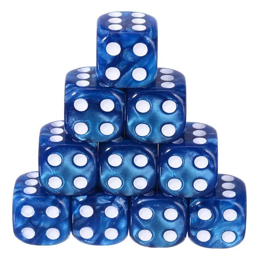 Горячая Распродажа, 10 шт., 6-гранные кубики, 16 мм, цветные, с круглыми углами, жемчужный драгоценный камень, Набор кубиков, для настольных игр, развлечений