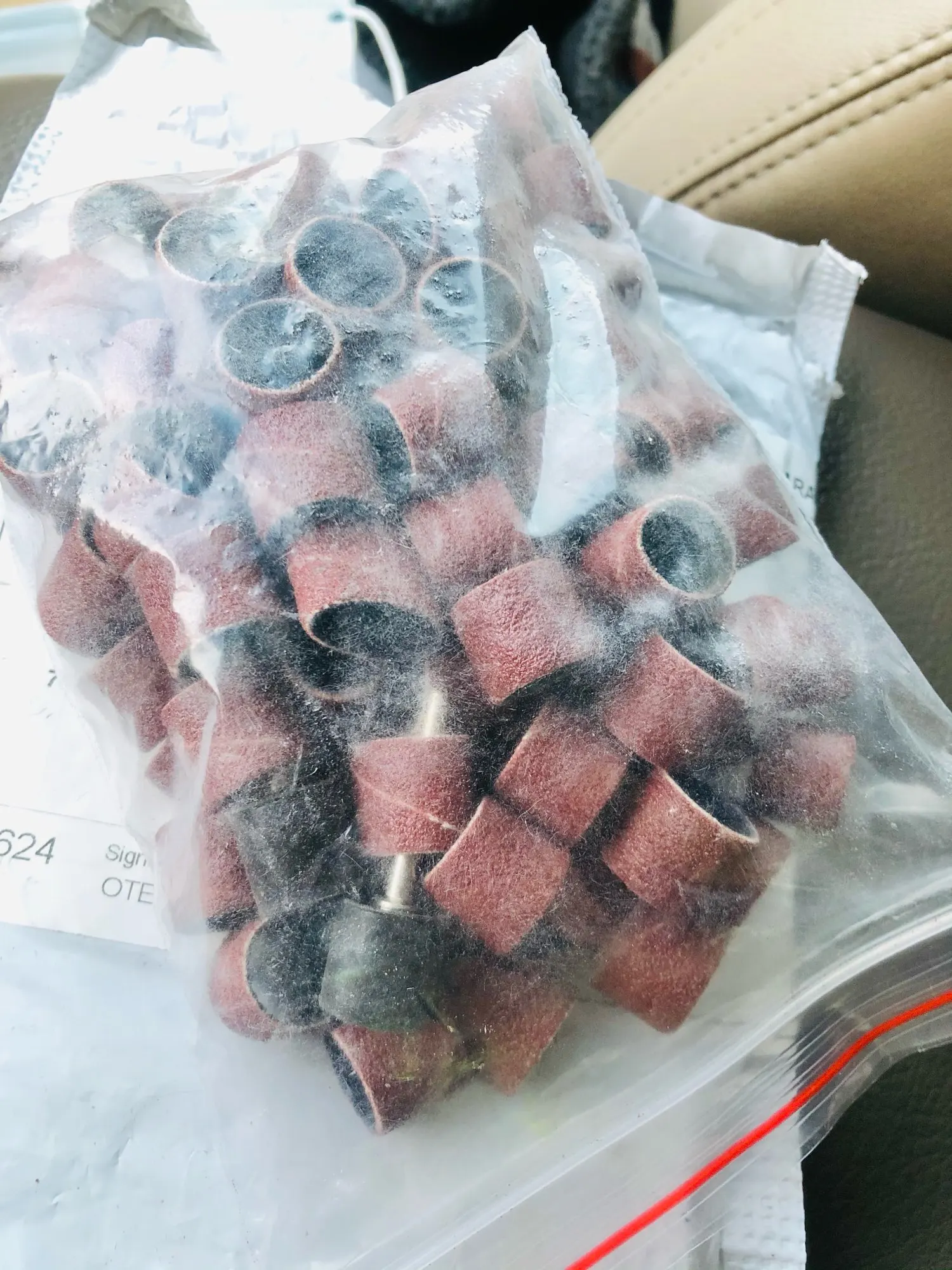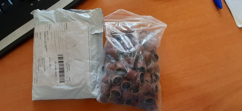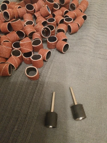 Получено в целости сохранности. Заказ исполнен за 21 день. Абразивные насадки для маленькой шлифмашинки типа Хильды. Сделаны из наждачной бумаги. Простые, но самому делать хлопотно, проще купить.