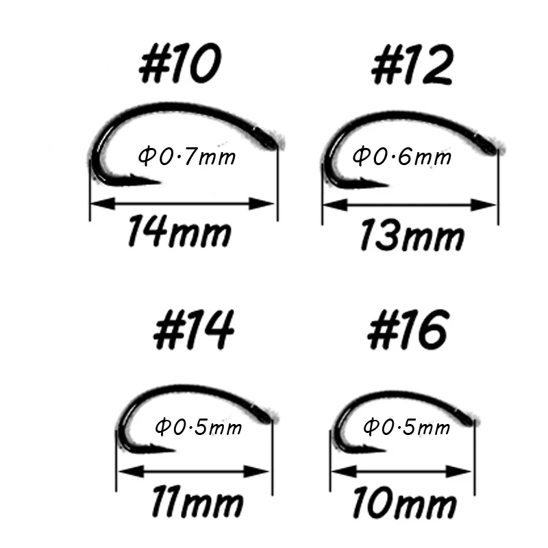 Крючки для вязания мушек Bimoo, золотистые рыболовные крючки для вязания креветок, нимф, Caddis, размер #10, #12, #14, #16, 50 шт.