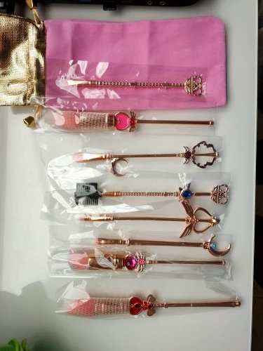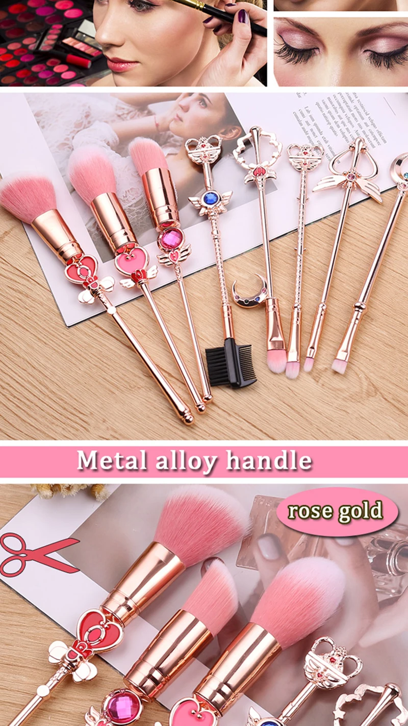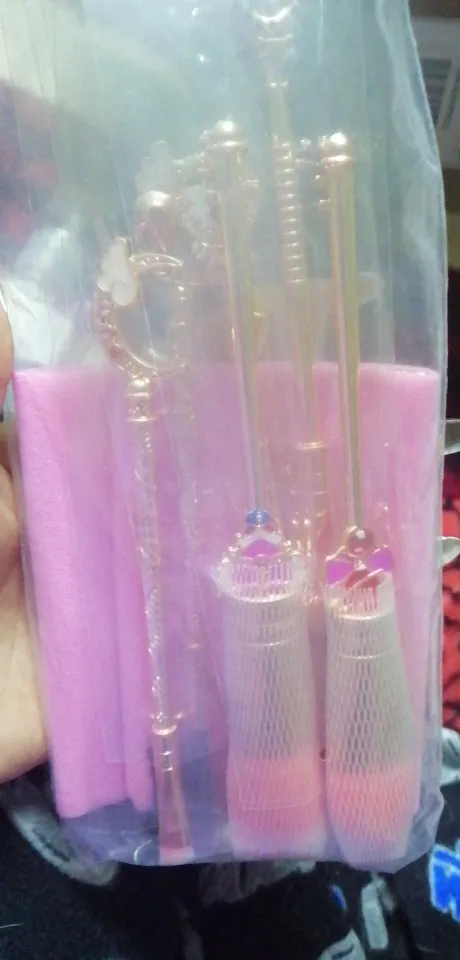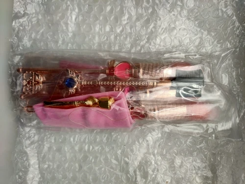 Les pinceaux sont magnifique de super bonne qualité les poignets des pinceaux sont en métal très qualité et solide il y a aussi une pochette rose très jolie livre avec je les recommande vivement pour les fan du manga il sont très beaux envoie du colis a était envoyé le lendemain de ma commande et la livraison très rapide colis très bien protégé et emballé avec soin je recommande ce vendeur très sérieux .