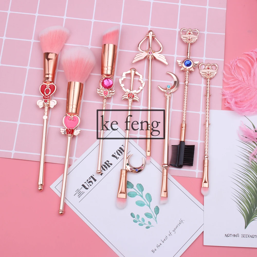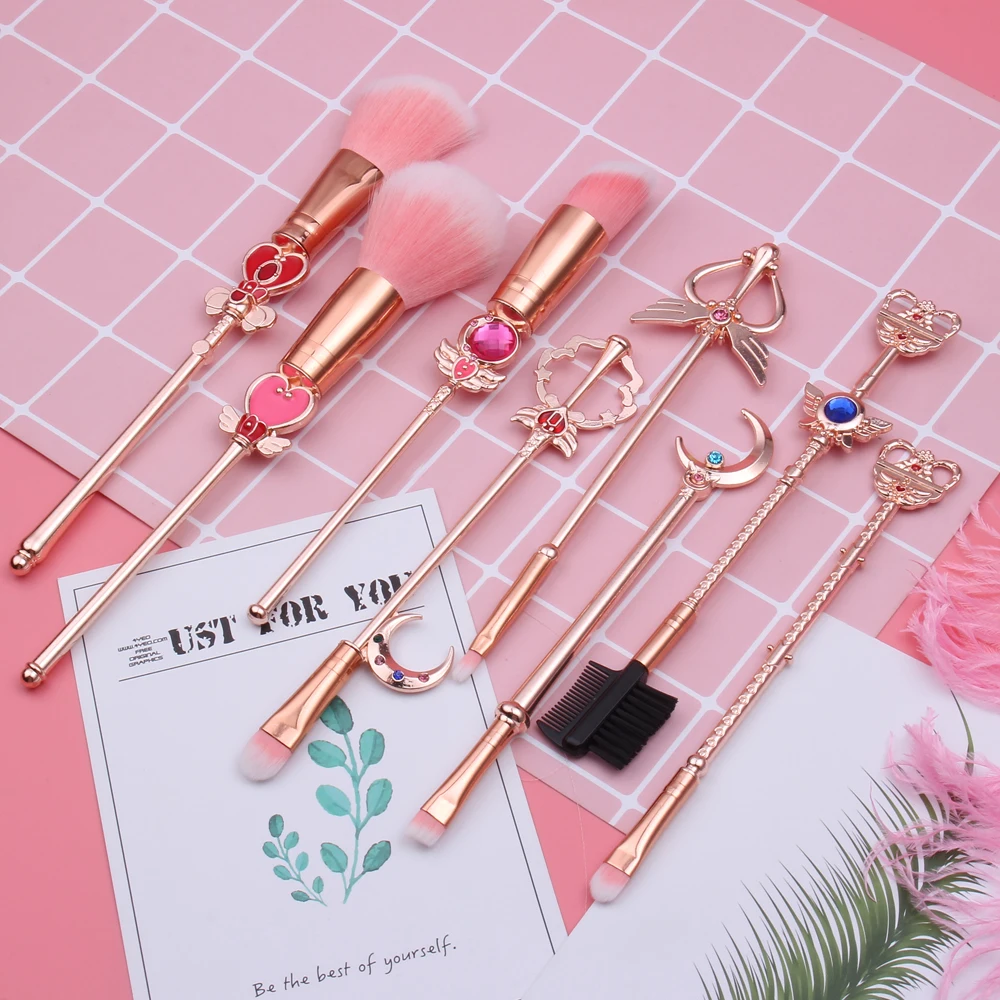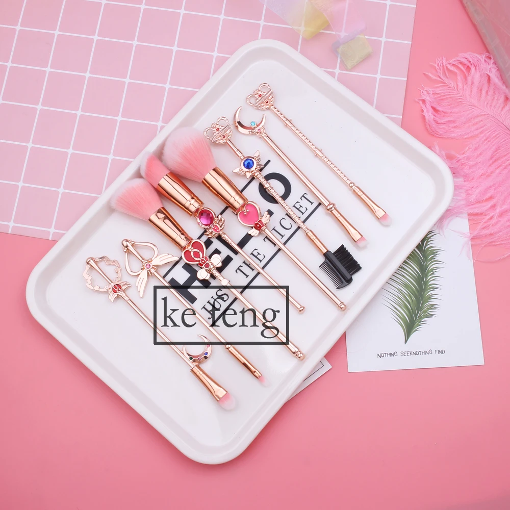 Набор кистей для макияжа в стиле аниме, набор инструментов для нанесения тональной основы, натурального и синтетического розового ворса