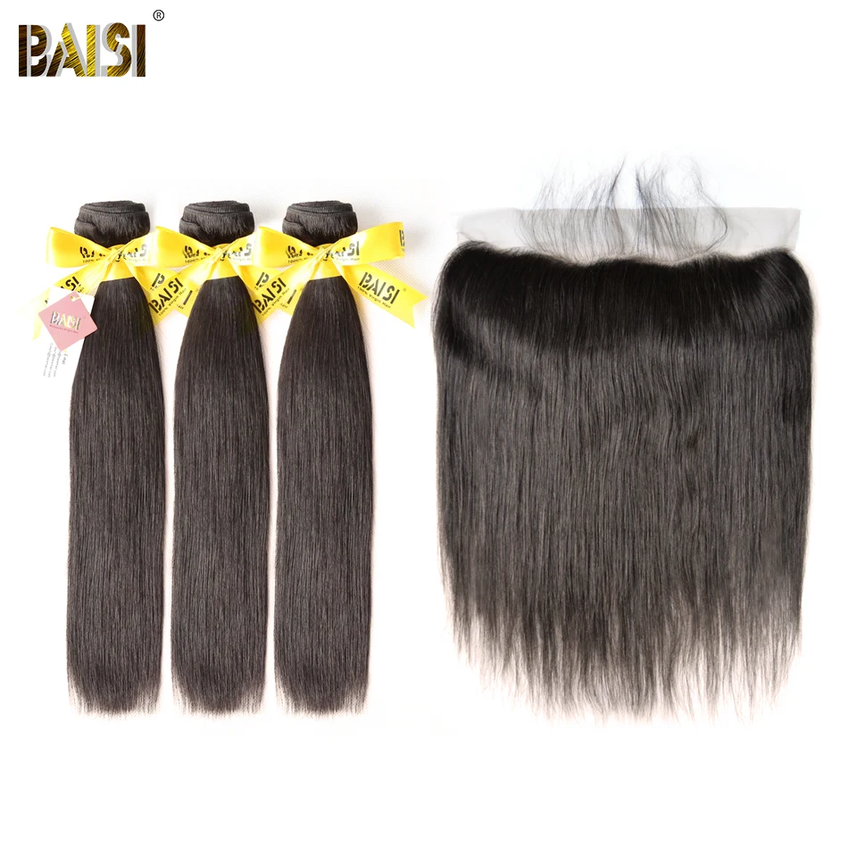 BAISI волосы индийские девственные прямые волосы 100% необработанные человеческие Hair10-28 дюйма, 3 пряди и 13x4 фронтальные, бесплатная доставка