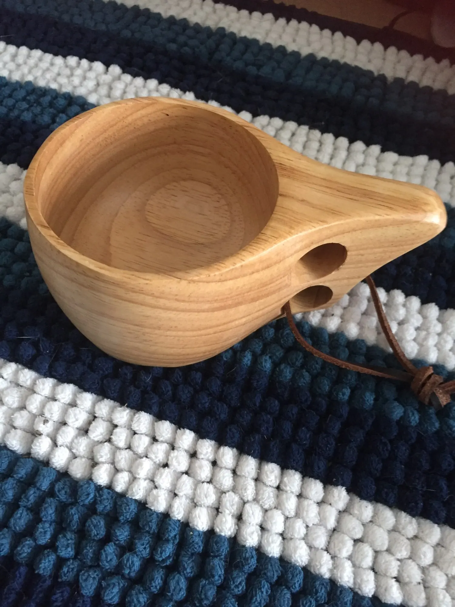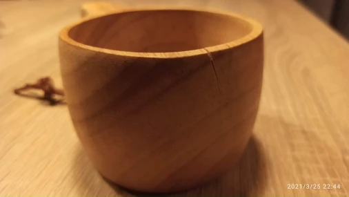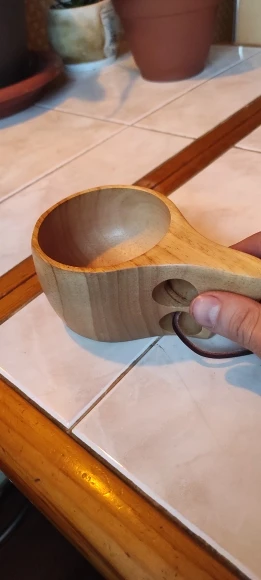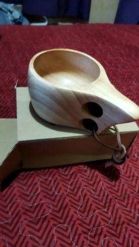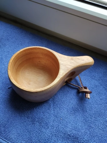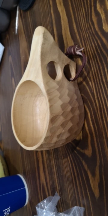 Шикарная кукса из бамбукового массива. Гладкая, хорошо отполированная кружка. Посторонних запахов нет, воду держит, тепло тоже. Отличный вариант для похода или на реконструкцию (если не присматриваться- похоже на берёзу)