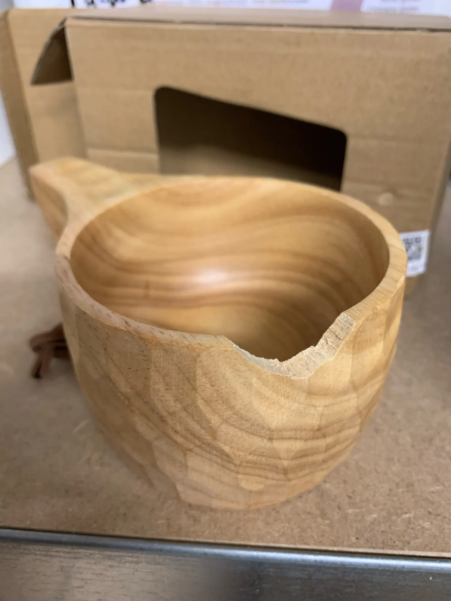 Быстро , дней 15 . Кружка хорошего размера, под пальцы удобно, но можно было обработать получше , есть заусенцы дерева(шершавость)