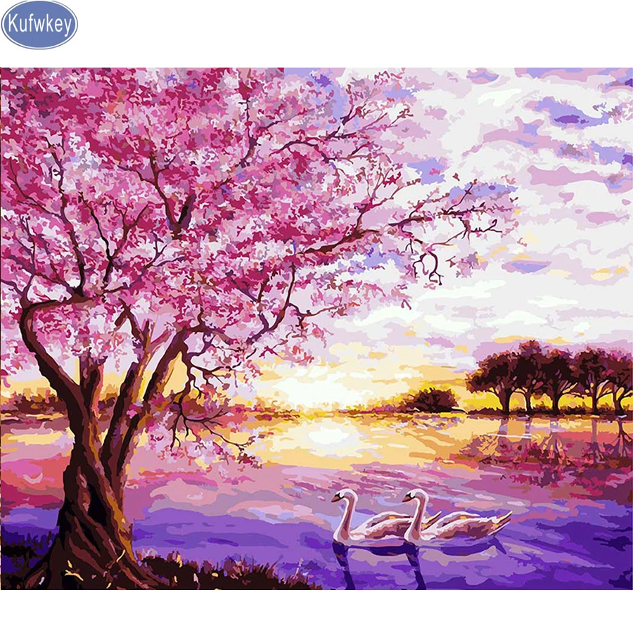 Пейзаж, алмазная вышивка, Сакура, озеро, лебедь, сделай сам, алмазная живопись, наборы для вышивки крестиком, Алмазная мозаика, рисунок из бисера, картина-пазл
