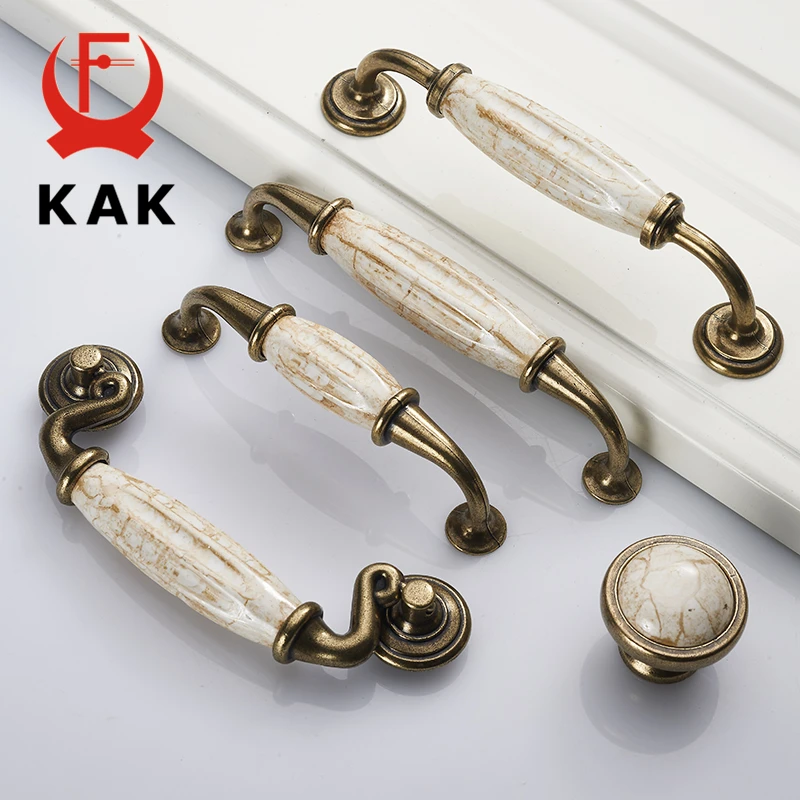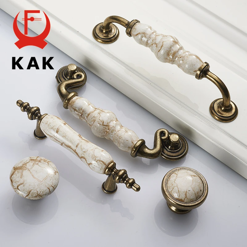 KAK 5 шт.лот керамические ручки для шкафа с мраморными линиями, ручки для ящика из цинкового сплава, дверные ручки для шкафа, Античная бронзовая ручка для мебели