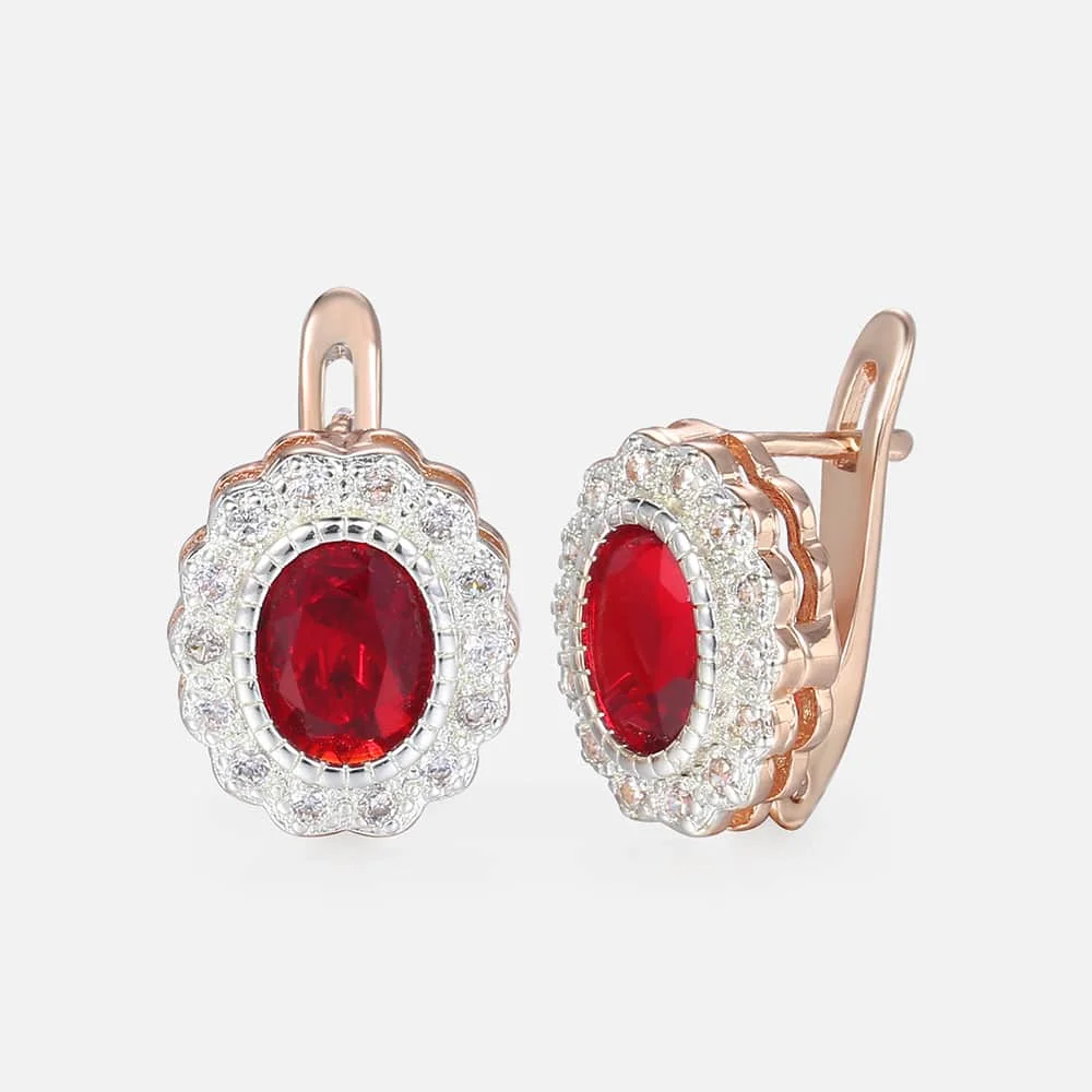 Женские серьги в форме сердца с красным кубическим цирконием GE99