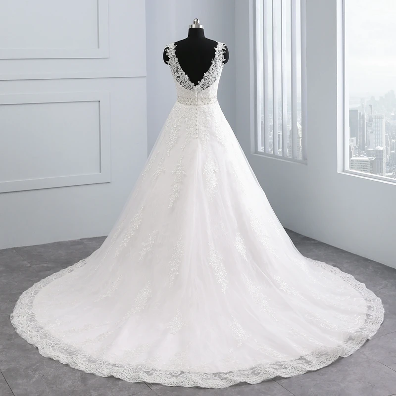 Miaoduo свадебное платье, новинка, бальное платье, Кружевная аппликация, свадебное платье 2022, v-образный вырез, кристалл, открытая спина, белые свадебные платья