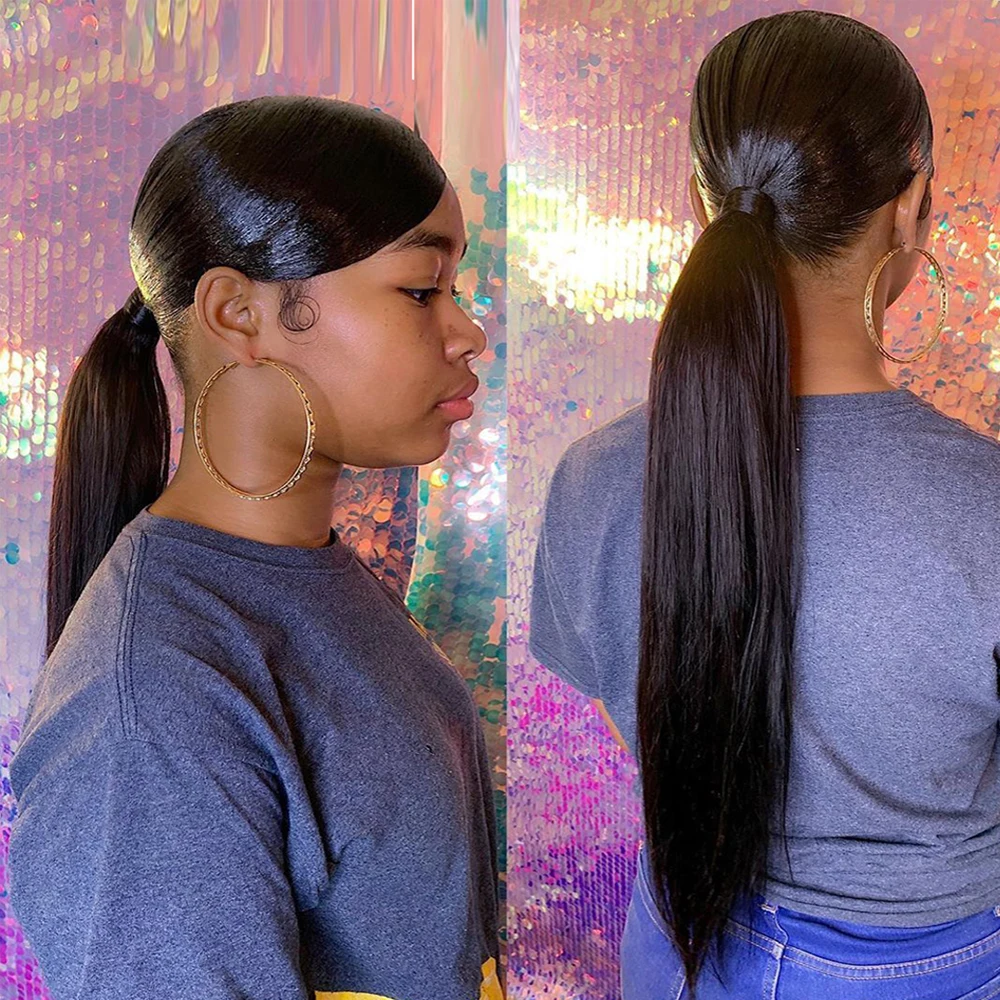 24 дюймов прямые человеческие волосы, "конский хвост", бразильские человеческие волосы Ponyta100 % человеческих волос натуральные волосы Non-Волосы Remy расширение для черный Для женщин
