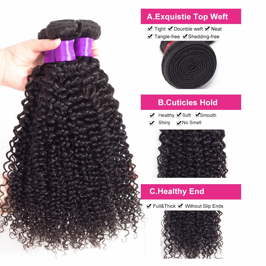 Шикарные вьющиеся волосы, 3 пряди с застежкой, 100% натуральные волосы Remy, наращивание бразильских волос, пупряди с застежкой на 4*4