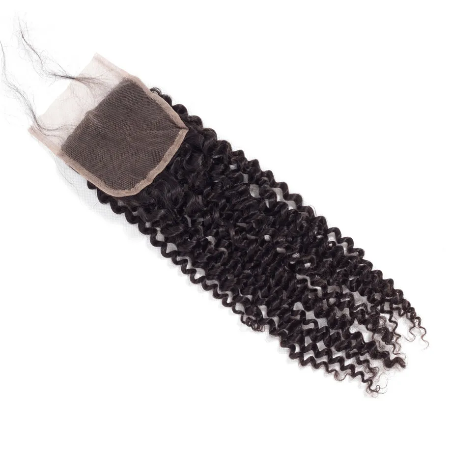4x4 Кудрявые Кружева Закрытие бразильские глубокая волна Закрытие 8...