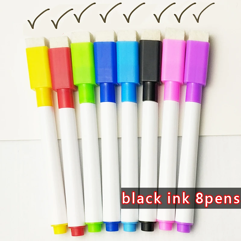 Маркеры для белой доски, 8 шт.лот, цветные, черные, со встроенным ластиком