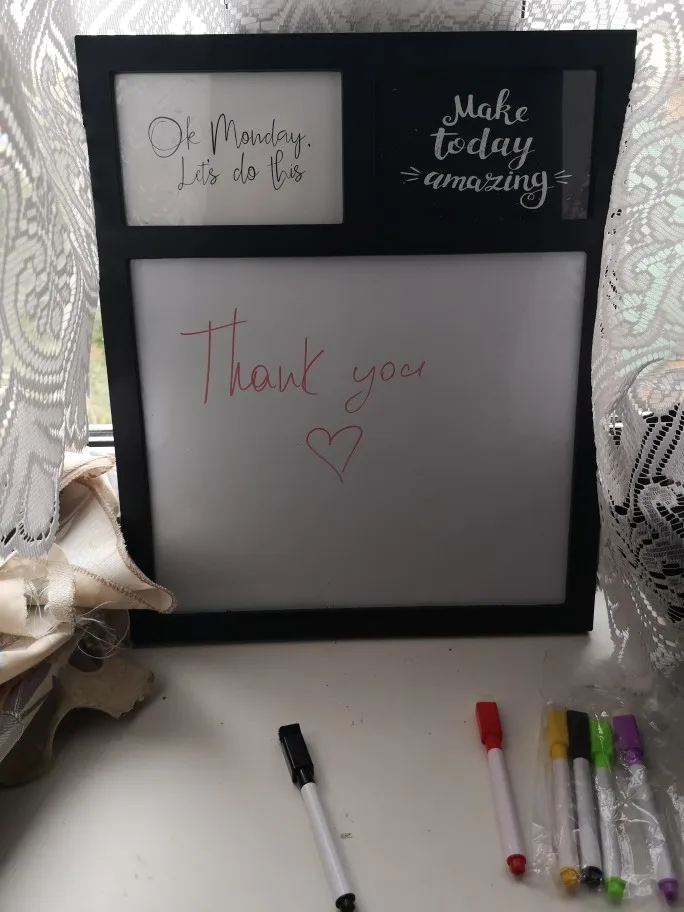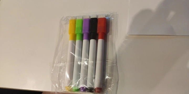 Маркеры хорошо пишут, до Барнаула посылка дошла за две недели. Минус: колпачки маркеров без магнита, соответственно нельзя прикрепить к холодильнику, и это усложняет хранение. Губки стирают не очень, и также без магнита, проще всего маркер с доски убрать обычной влажной салфеткой.