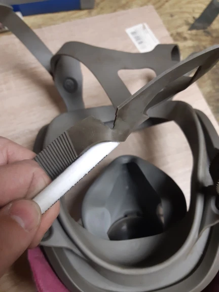 Сама маска неплохая. Добротная подделка 3M 6800. Из-за вируса, который нам подсунули те же китайцы, оригинальную хрен купишь. Поэтому пришлось брать это. На удивление, не запотевает. Прилегает нормально. Запах был, но не существенный. Но не пригодна для использования! Брал для шлифовальных работ. Через пару дней начали рваться резинки крепления (см. фото). На оригинальной маске эти крепления сделаны из резины, поэтому решил их вулканизировать заплатками. Не успели нагреть станок, как эти крепления расплавились. Т.е. это не резина, а какой-то дешевый пластиковый заменитель. Поскольку эти крепления постоянно должны натягиваться, то срок жизни у них очень короткий. Открыл спор, продавец написал, что маска слишком грязная на фото. А какой она должна быть после использования по назначению? Наверно, поэтому и порвалась :) Теперь жду решения от Али. Есть оригинальная полулицевая 3M 7500. С ней за три года ничего не случилось, все резинки целые. А эта - получается, выброшенные деньги.